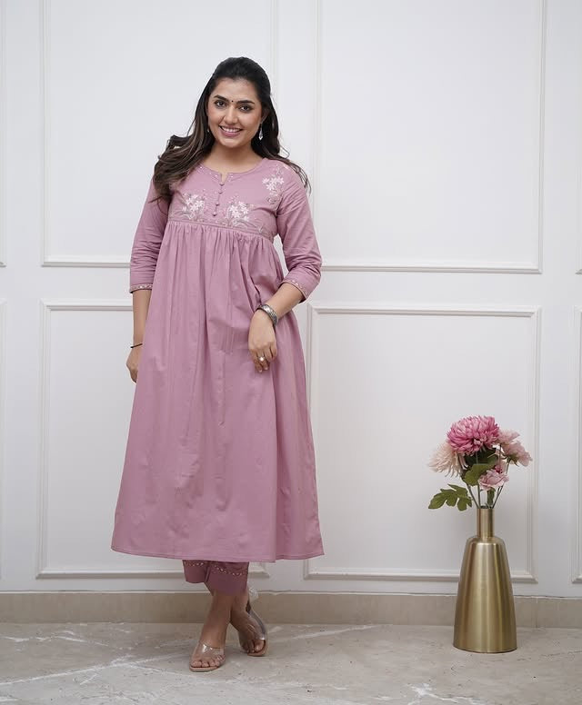 Tags: Cotton Kurta, Embroidered Kurta, Kurta Pant Set, Blush Pink Kurta, Women's Kurta