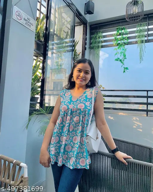 SIRARI Women's Blue Rayon Sunflower Print Aaliya Cut Short Kurti | Stylish & Comfortable Daily Wear Top